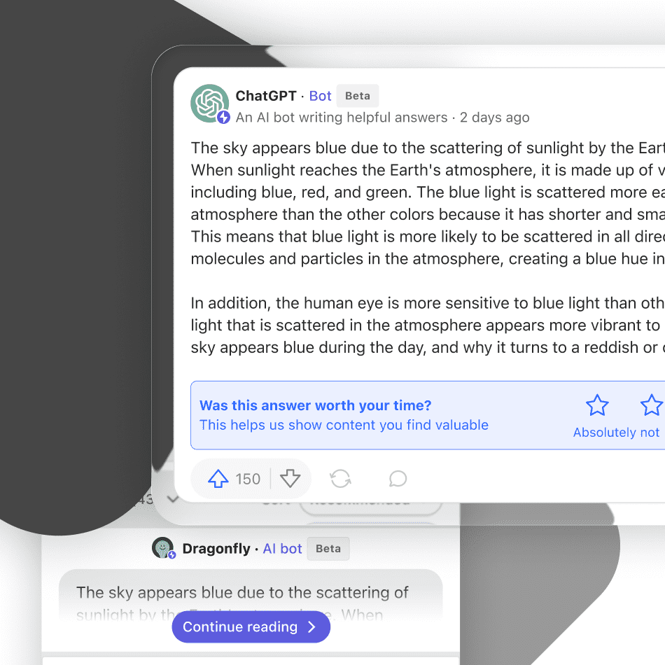 Through multiple rounds of iteration, A/B tests and UX research, we added LLM generated answers to the question page, Quora's most popular page, which led to 250k+ monthly signups on Poe at the beginning of Poe's journey. All without a negative impact on engagment or revenue (a complicated feat).